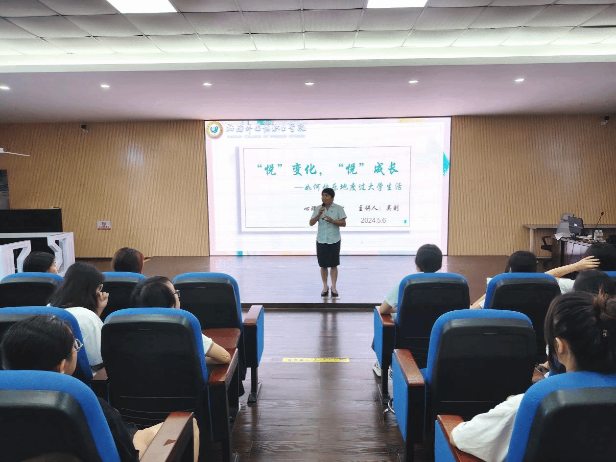 为促进我院23级五年一贯制学生更快更顺利地适应五年的学习生活,保持积极健康的心理状态,掌握应对心理问题的方法和资源,2024年5月6日上午,我院特邀我校心理健康教育中心的吴则老师为同学们开展了主题为“‘悦’变化 ,‘悦’成长——如何快乐度过大学生活学生”心理健康教育讲座。