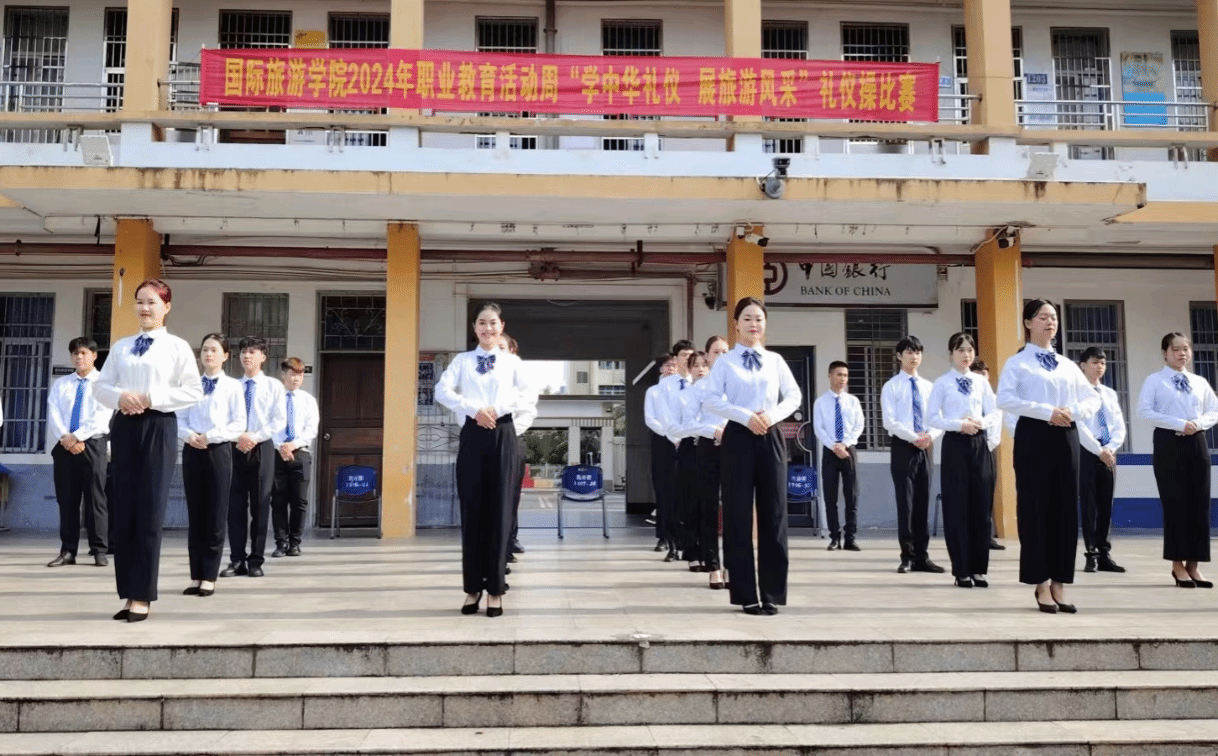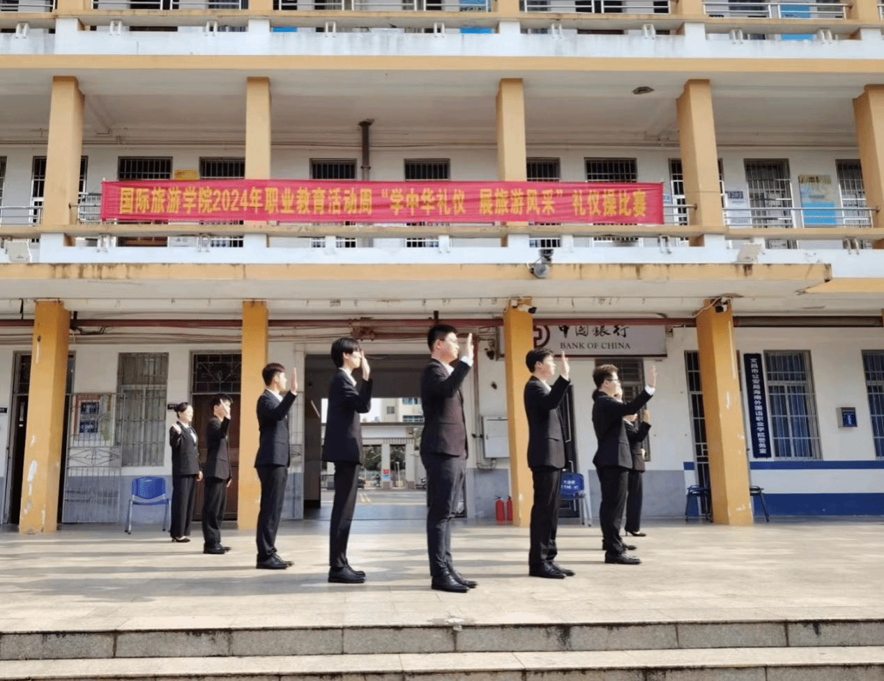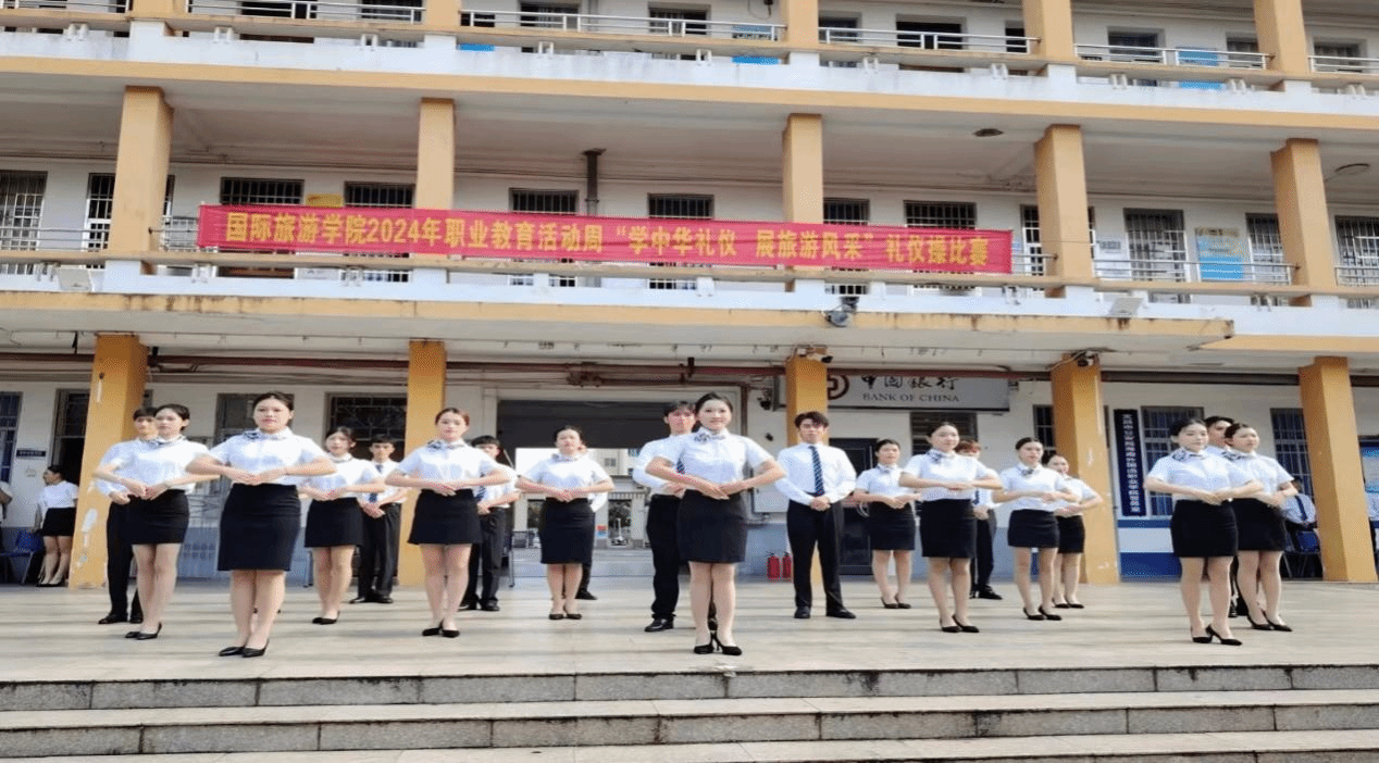 礼仪是中华民族的传统美德,从古至今,源远流长。大学生是祖国的未来,是21世纪国家建设的主力军,培养大学生庄重大方、热情友好、礼貌待人的文明行为举止,增强思想道德素质和文明礼仪素养尤为重要。为健全我院人才培养机制,丰富我院职业教育活动周活动,培养同学们的礼仪意识,加强个人文明礼仪修养,我院于2024年5月8日上午举办“学中华礼仪.展旅游风采”礼仪操比赛。