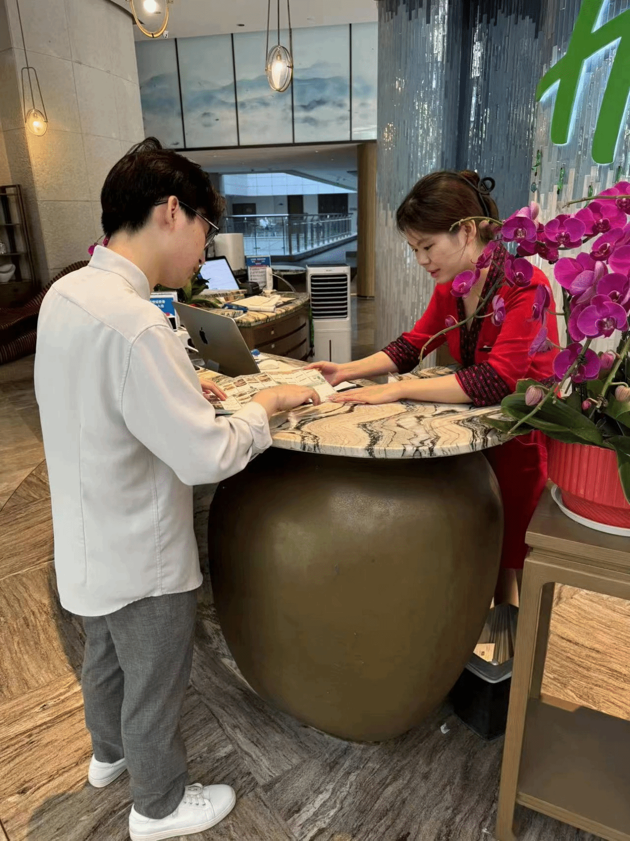 在华邑前厅部,陈欣的日常工作是接待来自世界各地的宾客。她以热情和专业的态度,为每一位客人提供个性化的服务。她细致入微地关注客人住店期间的需求,并且总是能够及时响应,确保事事有回应。陈欣的目标是为客人营造一个温馨、舒适的旅行体验,她的真诚和努力也为她赢得了客人的诚挚称赞。