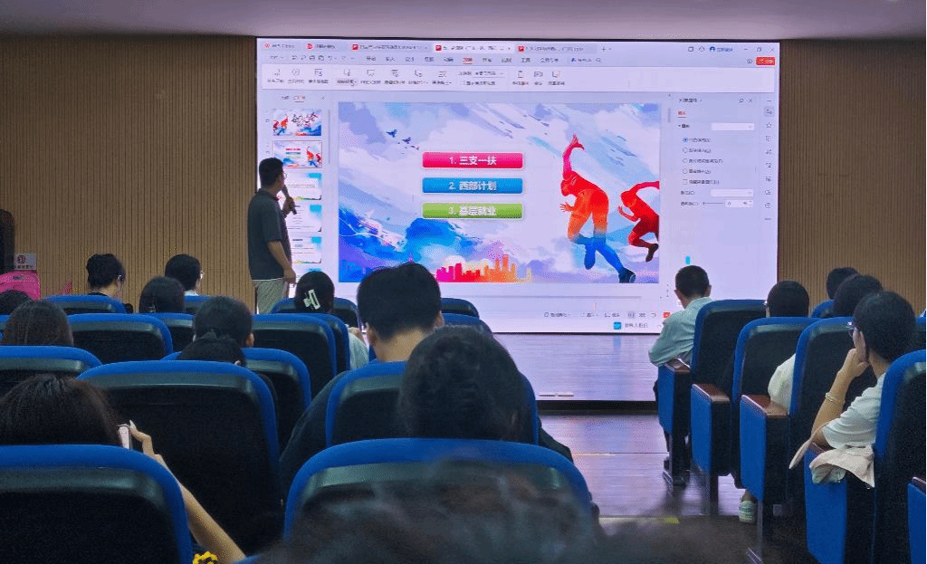 接下来,高潇翔老师作三支一扶、西部计划、基层就业的宣讲,为同学们详细介绍这些项目的具体情况和参与方式,并鼓励同学们考虑通过这些项目服务社会、实现自我价值。