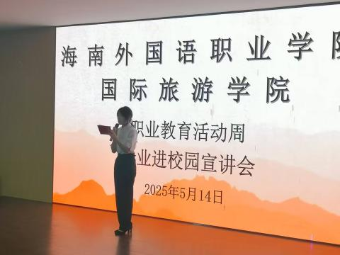 5月14日下午,国际旅游学院2025年职业教育活动周“企业进校园宣讲会”在图书馆VR导游实训室成功举办,吸引了洲至奢选三亚天成贝尔蒙海景等7家知名企业代表与近两百名师生齐聚一堂,共话职业发展新机遇。