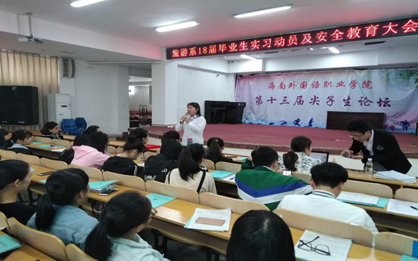 旅游系在接到学院关于征兵宣传动员的通知后,系部党总支书记林明霞书记非常重视此次主题班会,根据学院的工作布置,召开了高职高职阶段辅导员、班主任会议,确定征兵主题班会的具体内容。旅游系各辅导员班主任参加了征兵工作的布置会议,了解并记录学校对于征兵工作布置的主要内容。分别于2017年12月3日在整个系部针对各个年级在校的班级召开主题班会,对于已经出去实习的同学,通过微信、QQ告知了学生关于征兵的一些文件以及通知。同时在12月8日针对18届毕业生召开了实习前的宣传动员大会,在多功能报告厅举行,会议上常彩霞老师重点解读了《海南外国语职业学院鼓励学生应征入伍实施办法》,宣布了全国征兵网的网址。林明霞书记分别针对征兵事宜对学生进行了动员宣讲。