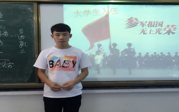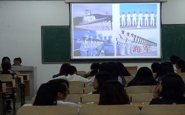 除了通过主题班会之外,我系还积极组织学生观看一些军旅题材的视频宣传等,邀请退伍军人参加宣讲。2016到2017年,两年内我系先后有15名同学报名参军。