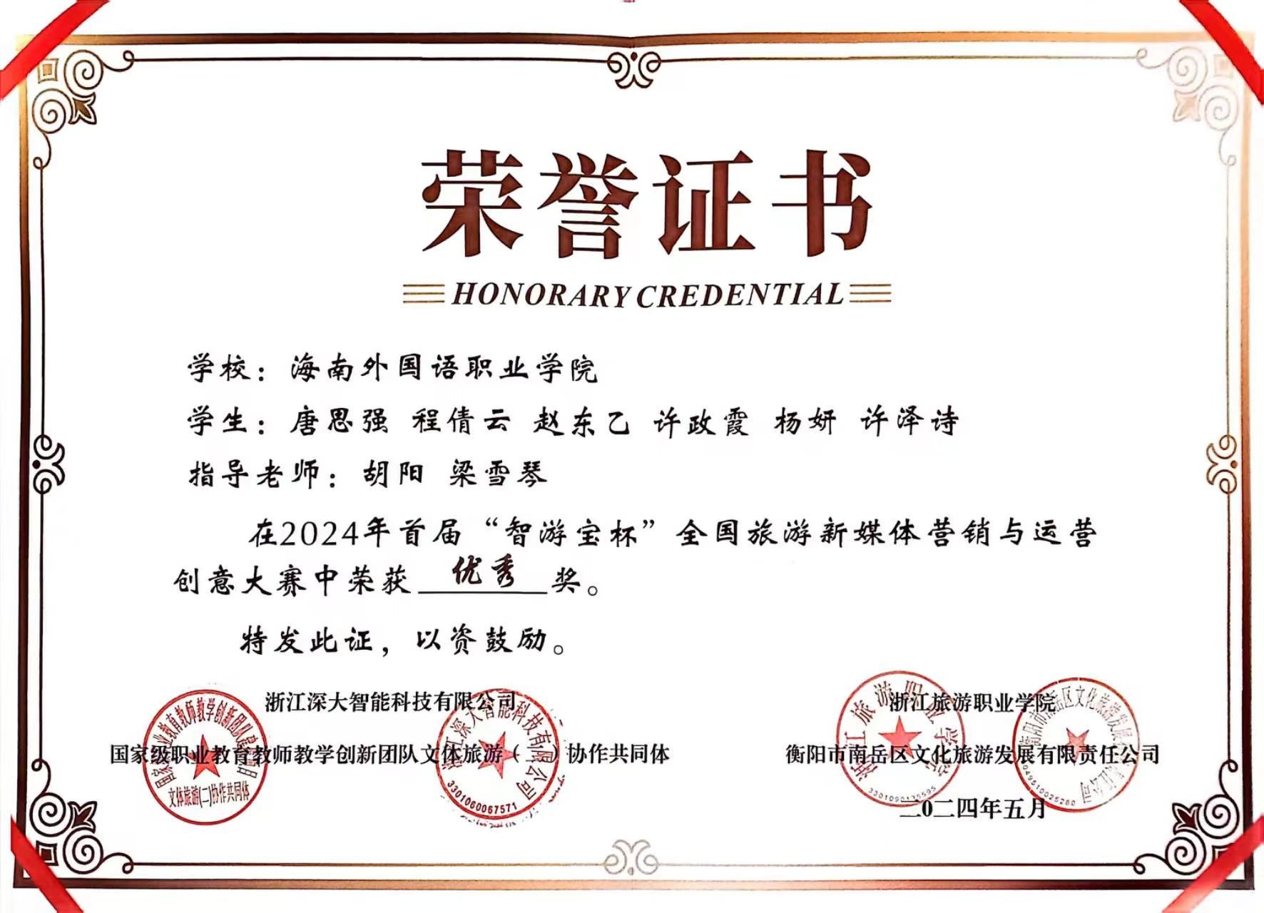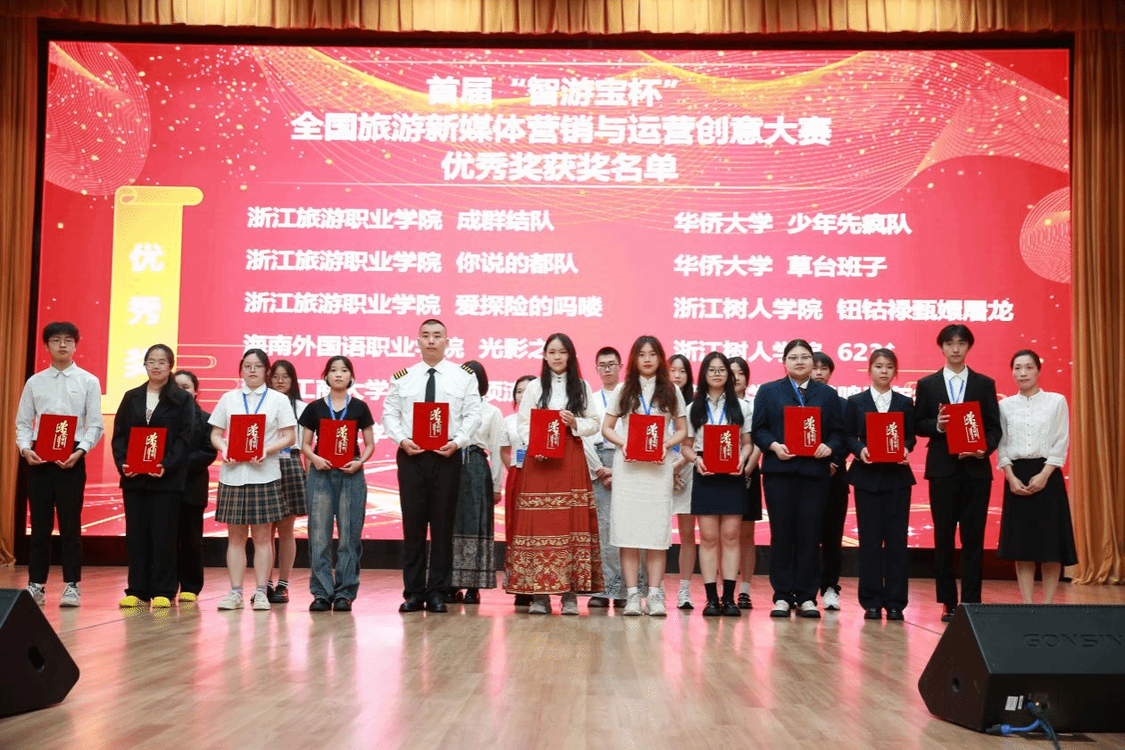 5月19日,2024年首届“智游宝杯”全国旅游新媒体营销与运营创意大赛中成功落幕,我院“六小玲珑”(选手:李业辉、王文杰、胡家冰、杜晓青、何晶晶、蔡妮)和“光影之队”(选手:唐思强、程倩云、赵东乙、许政霞、杨妍、许泽诗)两支队伍凭借出色的营销策略和创新思维,赢得了评委的一致好评,取得了二等奖和优秀奖的优异成绩。这不仅是对学生们能力的肯定,也是我院教育教学质量的显著体现。