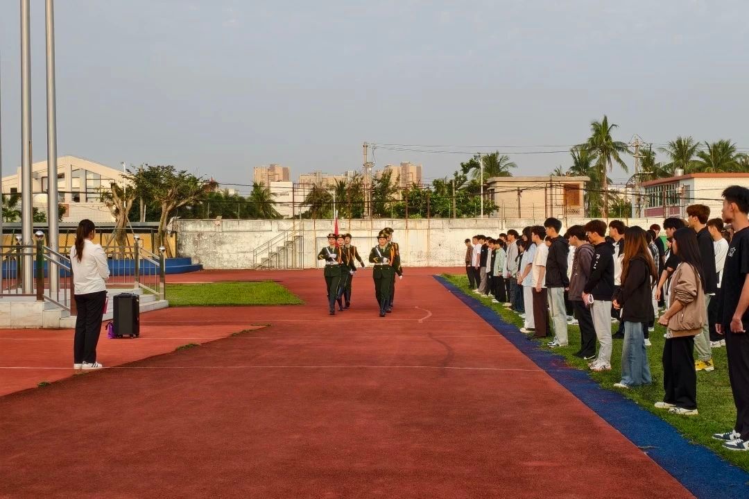 4月14日早上7时,体育学院全体师生齐聚操场进行庄严而隆重的升旗仪式。