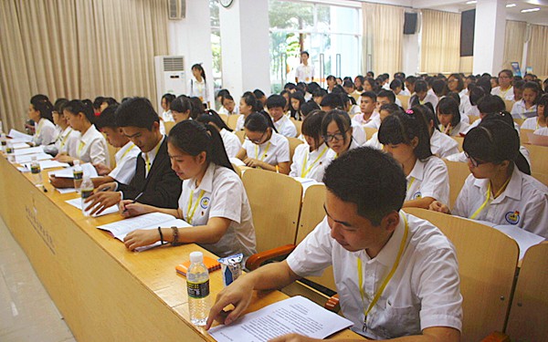 10月11日,在全院上下深入贯彻落实党的十八大和十八届三中、四中全会精神,以及习近平总书记系列重要讲话精神的大好形势下,在全院各级团组织以团十七大、十七届二中全会和省第六次团代会精神为指导,为实现两个一百年的宏伟目标而努力奋斗的新形势下,在学院党委、上级团组织和省学联的亲切关怀和在悉心指导下,全院团员青年热切期盼的中国共产主义青年团海南外国语职业学院第七次代表大会暨海南外国语职业学院第十五次代表大会胜利召开,来自学院各级团、学组织的361名团、学代表出席大会。