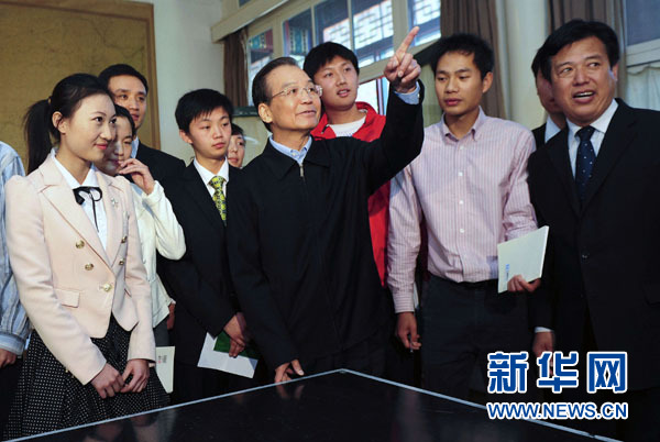5月3日,中共中央政治局常委、国务院总理温家宝同20位来自首都各界的青年代表在中南海座谈,共话青年成才之路。 新华社记者 李涛 摄
