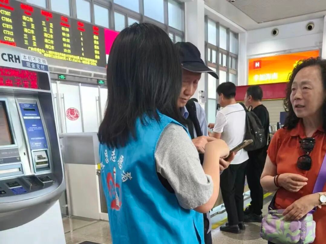 在服务过程中,我发现前来车站的旅客大多是“候鸟老人”。他们中的许多人不太熟悉手机购票的操作流程,于是我和其他志愿者便会耐心地教他们如何使用手机购票。每当帮助他们解决问题后,总能收到一句温暖的“谢谢”。候车时,老人们还会和我们聊天,热情地分享家乡的美景与趣事,邀请我们有机会去他们的家乡走走看看。他们常说:“现在有你们这些年轻人教我们用手机买票,真是太贴心了!”每一次听到这样的感谢,我的心中都会充满幸福感与成就感,也让我更深切地体会到,志愿服务的意义就藏在这些平凡却温暖的互动里。这份“赠人玫瑰,手有余香”的充实感,远比单纯的闲暇时光珍贵得多。它让我明白,青年的价值正体现在这些看似微小的奉献中,点点微光汇聚起来,便成了足以温暖寒冬的蓬勃力量。