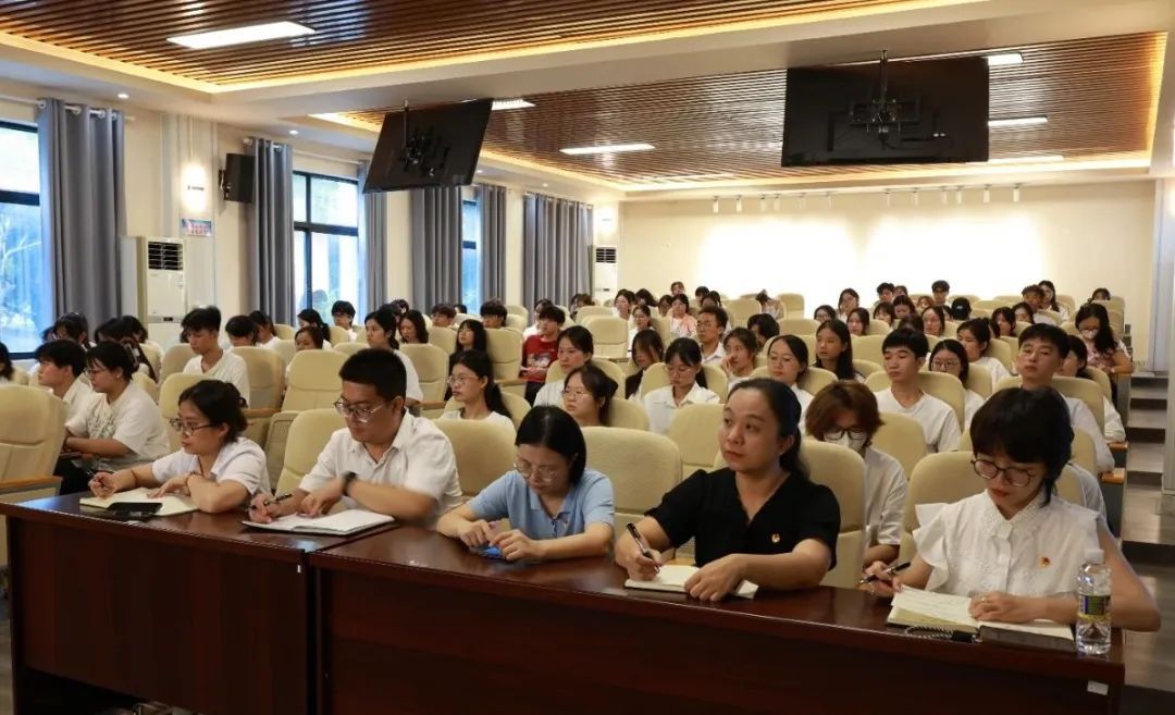 9月2日下午,共青团海南外国语职业学院委员会组织召开学习贯彻党的二十届三中全会精神集中学习会。会议由校团委书记陈仕榜主持,校团委全体专职团干、各学院团总支负责人及校团委学生骨干共计90多人参会。