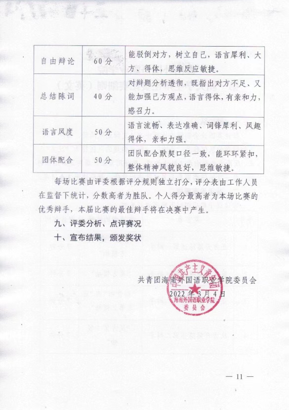 关于海南外国语职业学院第一届大学生辩论赛的通知