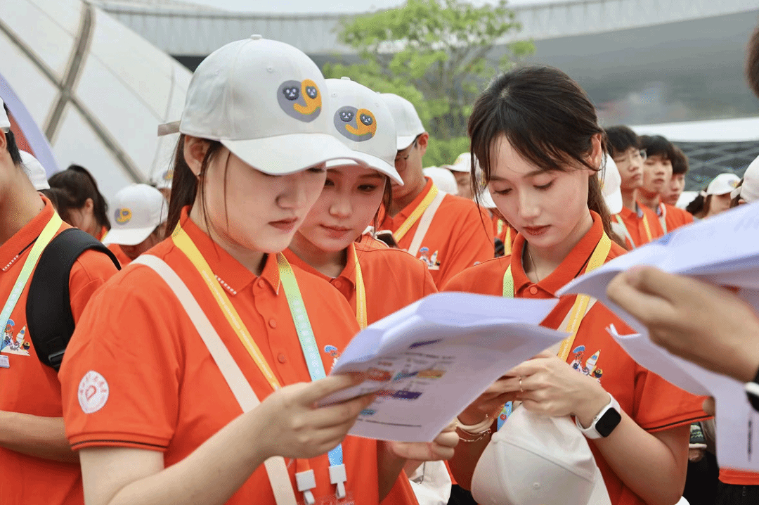 ▲小椰青”们不断温习志愿者手册和工作流程图。