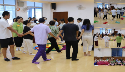舞动治疗是以身体为媒介,应用非语言动作分析,激发生命力和适应能力。活动过程中,黄良芳老师通过语言陈述、肢体动作等引导,全体辅导员们随着音乐舞动,用动作表达真实的自我,获得疗愈和滋养。黄良芳老师说作为辅导员,首先要照顾好自己,学会自我解压,才能更好地照顾大学生群体。
