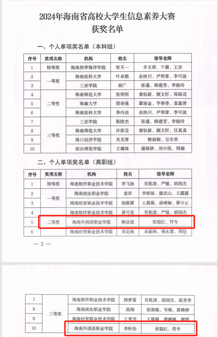 日前,由省教育厅主办、省高等学校图书情报工作委员会承办的第五届海南省高校大学生信息素养大赛圆满结束,共有来自全省高校的5273名学生报名参赛。根据校内初赛、复赛成绩选拨,共有70名学生进入决赛。我校学子在比赛中表现优秀,最终取得可喜成绩,其中人文艺术学院学生柳显就荣获高职组二等奖、东方语言学院学生李昕怡荣获高职组三等奖,张聪红、符专两位老师荣获优秀指导老师二等奖。