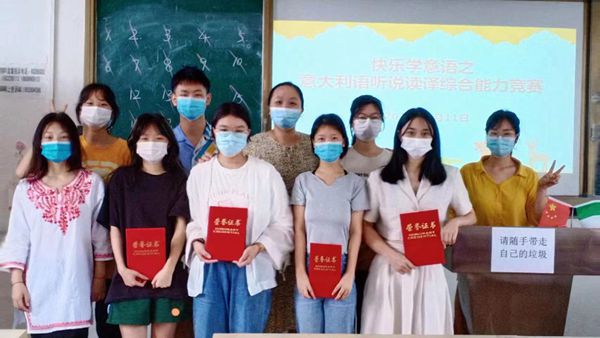 听说读译是学好一门语言的关键。5月11日上午,20、21级意大利语班学生齐聚1403,开展了一场妙趣横生的竞赛活动。规则介绍:30个题目中听力题、翻译题、简答题随机分布,选手抽题目30秒钟内回答问题,全部答对者,记10分,部分答对由老师给予评分,共三轮。接下来就欣赏同学们才思横溢的高光时刻吧。