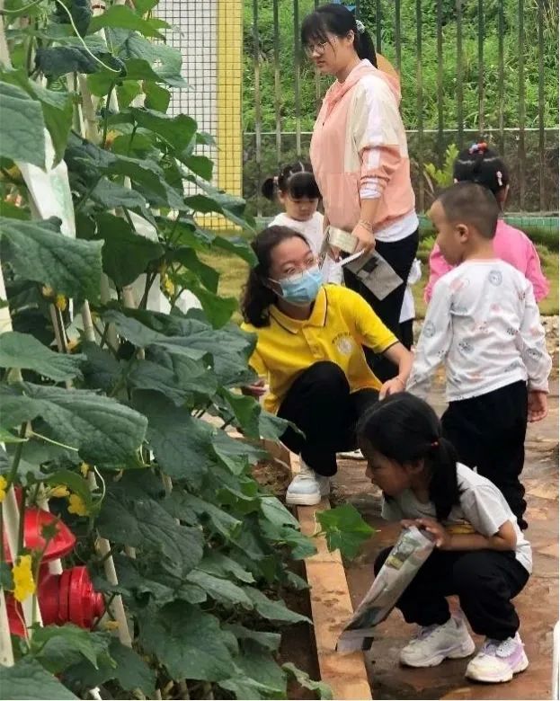 晨练及早餐环节结束后,接下来就开始日常教学活动。文汇幼儿园的主题教学内容非常丰富多彩,包含科学、艺术、语言健康等各个方面。观察植物时老师会带领着小朋友们到室外去观察小朋友们自己种植的蔬菜花卉。在体能活动中,小朋友们拿着球认真的跟着老师一起热身玩游戏。形式多样的教学活动让孩子们玩得开心,也学得开心。同学们也在近距离中观察到了孩子们学习的过程,深刻体会到寓教于乐这一教学理念。此外,大家也感受到了幼儿园老师工作琐碎,需要足够的耐心去仔细观察,了解幼儿的心理及需求并及时处理意外情况。