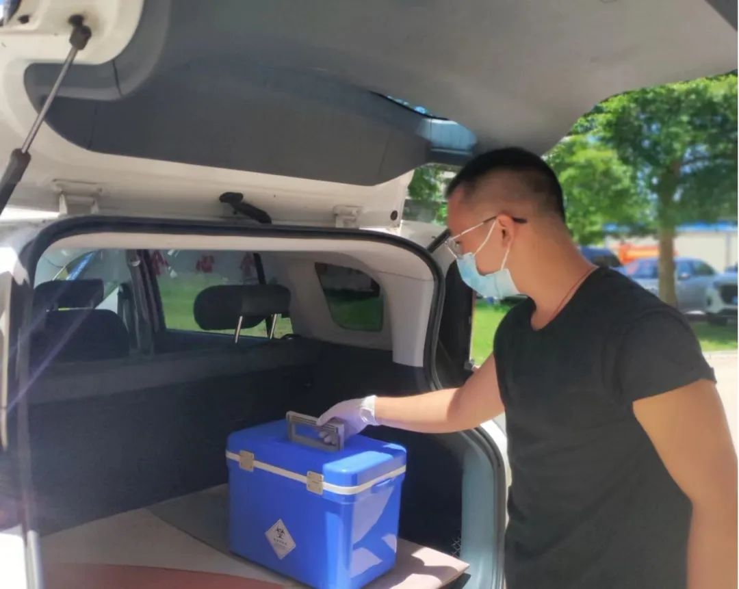 在进行全民核酸检测时,同校的小伙伴们勇当“大白”进行村民核酸信息采集的任务,我则成为一名“信使”,连接采样点和文城镇疾控中心的核酸样本转运,为核酸检测跑出“加速度”。领取样本箱、收集袋、核酸样本统计、封袋、装箱、封箱...“15管300人”、“收到。”、“10管181人,其中黄码1管”、“收到”、“这边封箱了,统计管数,好了好了,可以走可以走”抢时间;比速度;护送转运箱;争分夺秒转运核酸样本;与病毒较量。此外,在第五轮大规模核酸检测中,通过大家的共同努力下,我们冯坡镇样本转运速度得到领导的肯定。