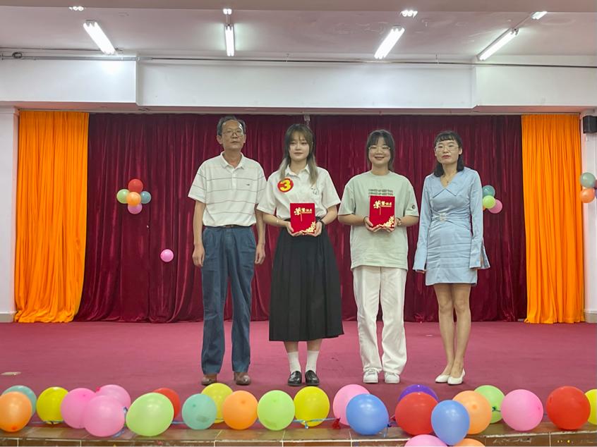 △金龙英老师和黄健老师为获得二等奖的四组选手颁发荣誉证书