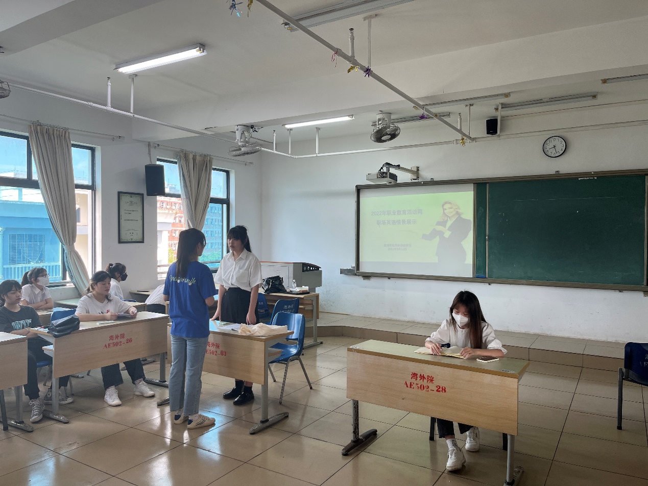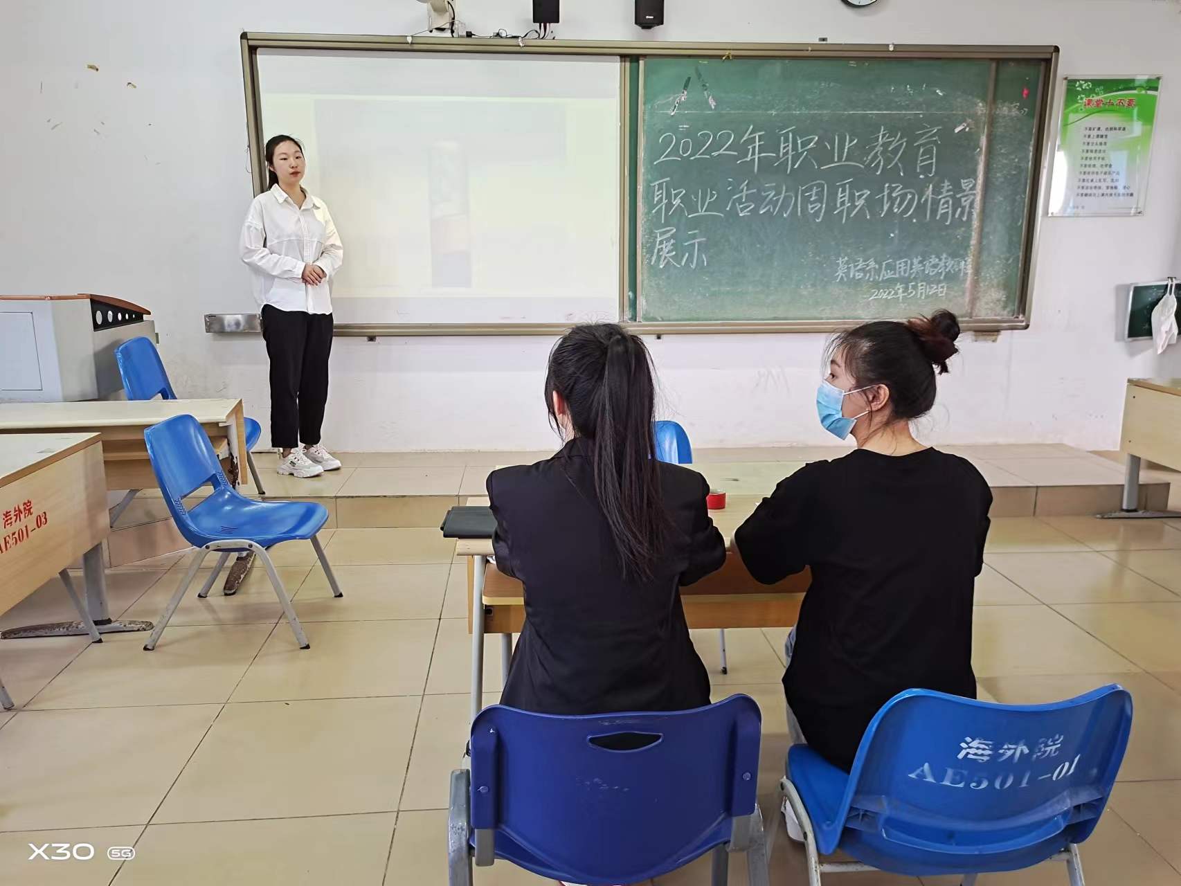 5月12日上午,应用英语教研室在AE501和AE502教室举办了职场英语情景展示活动,活动由潘立鹏老师和张银杰老师负责组织,20应用英语1-4班及18应用英语(501)班全体同学参加展示。