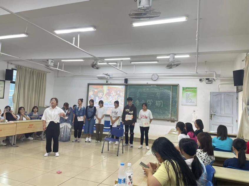 智力游戏,如:英语猜词游戏、英语造句游戏,则综合同学们所学专业的要求,以提高同学们的专业素养为主。各班所设计的游戏,将专业知识元素融入其中,很好推动了英教学生们知识水平的提高和良好学习习惯的养成,让同学们在浓厚的学习氛围中专注学习;在团结的班级团体中健康成长;在大学伊始开启属于自己的炫彩人生,创造了一个良好的开端。