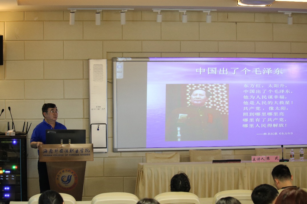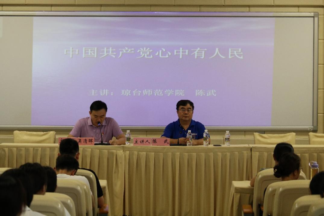为全面、深刻、准确地把握党史学习教育精神,6月25日下午英语系邀请琼台师范学院马克思主义学院党总支陈武副教授在AE101小型报告厅讲题为“中国共产党心中有人民”的专题党史教育讲座。英语系全体管理员、党员教师、学生党员、学生干部代表共120余人参加,讲座由英语系党总支副书记吴清晖主持。