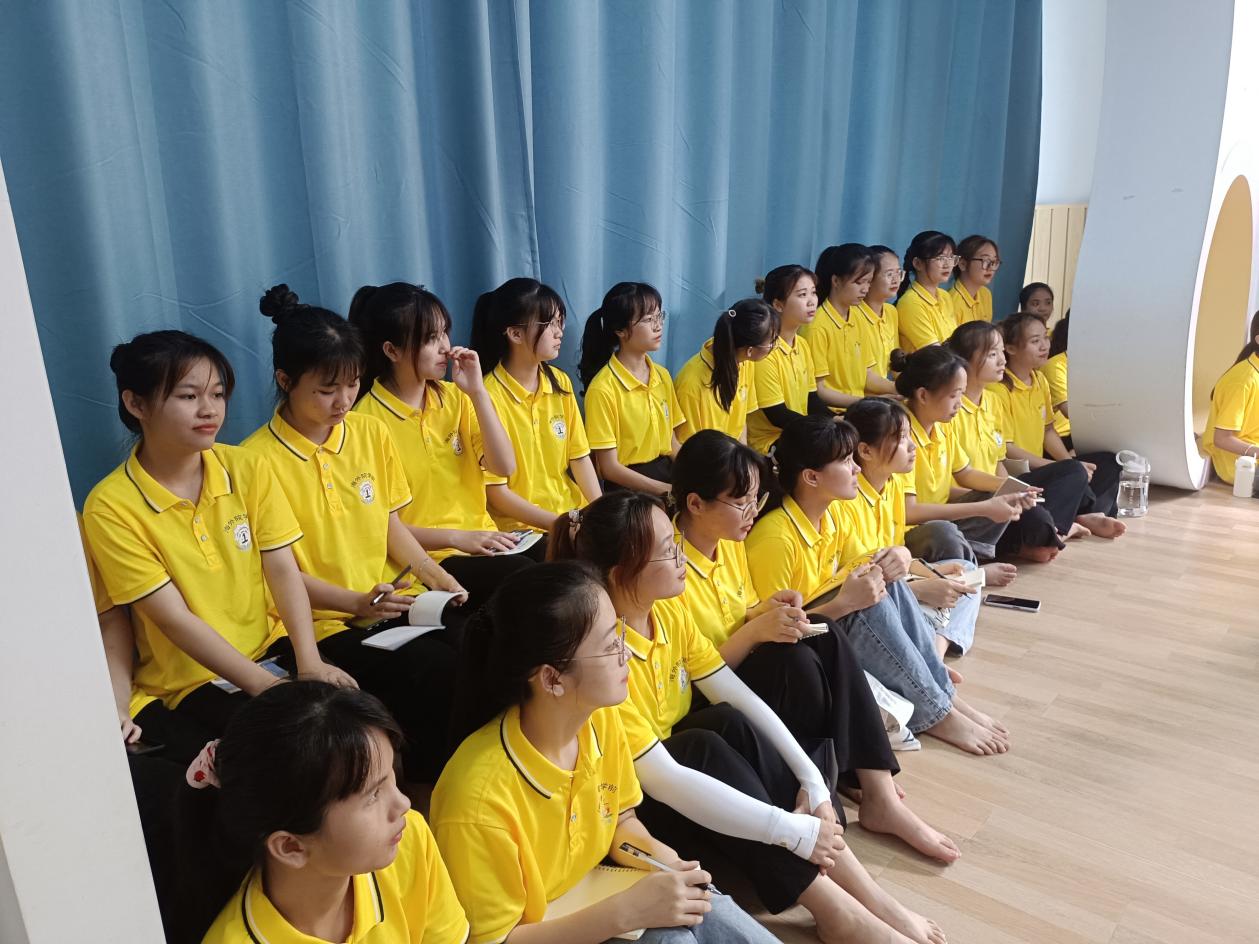 在下午的座谈会上,同学们集中坐到一起,大家互相交流心得,倾听唐园长介绍了幼儿园的基本情况、办学理念。经过一天的学习和实践,同学们不仅初步了解了幼师的岗位职责,还与可爱的孩子、班级老师之间建立了深厚的友谊,感受到了大家庭的温暖。