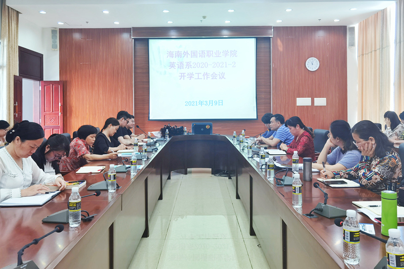 3月9日上午,海南外国语职业学院英语系召开2021年春季开学工作会议。英语系副书记吴清晖、副主任张清萍、各教研室主任、全体辅导员及教师出席会议,会议由团总支书记冯琛主持。