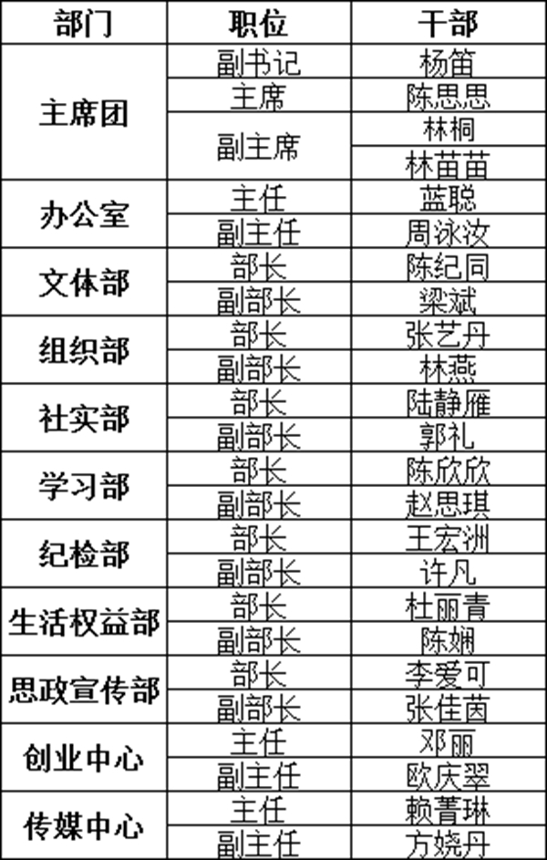 本次换届大会本着公平、公正、公开的原则,采用无记名的投票方式进行选举,旨在为我系团总支学生会主席团及各个部门选拔优秀人才。大会的成功开展为英语系团总支学生会注入了新鲜的血液,激发了大家的工作热情,为下一阶段各项活动的成功开展奠定良好的基础。相信经过大家的共同努力,团学活动也将更有成效,更具特色,学生会工作一定会再上一个新台阶!