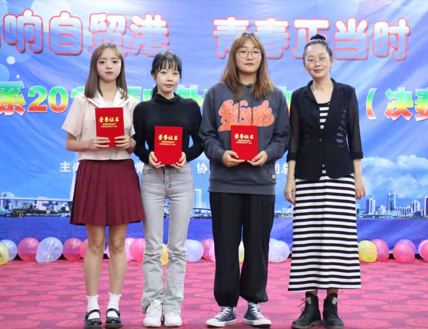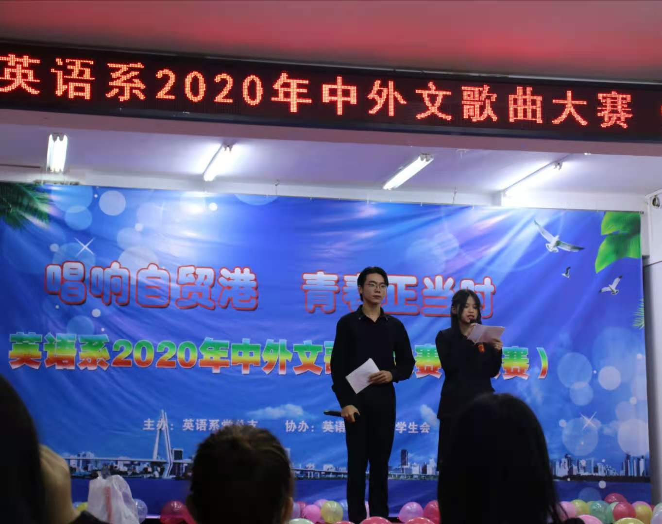 用歌声唱响青春,用青春放飞梦想。为海南自贸港的建设营造良好的文化氛围,全面贯彻落实自由贸易港建设总体方案,由海南外国语职业学院英语系团总支学生会主办“唱响自贸港,青春正当时”中外文歌曲大赛于11月9日晚八点在多功能报告厅里举行。担任本次比赛的评委有英语系金龙英老师及学生会主席团。