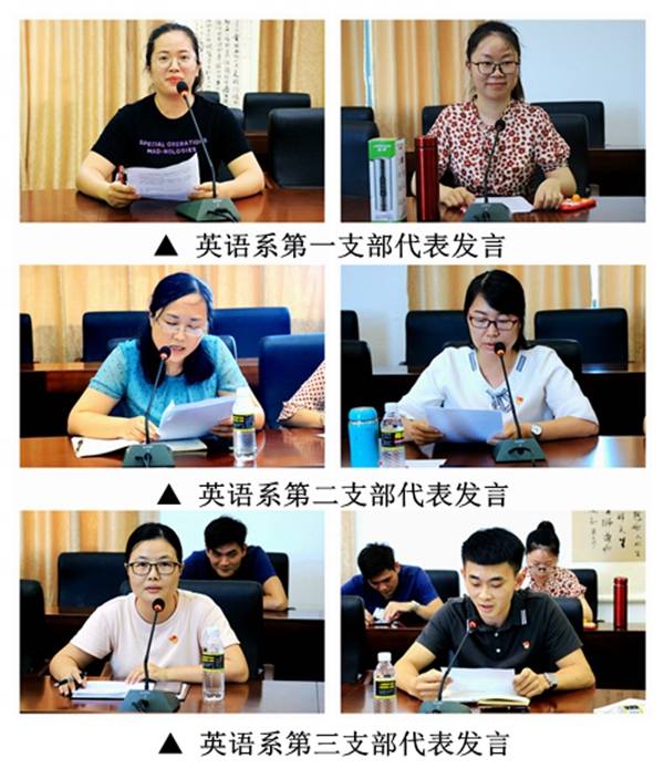 英语系三个党支部党员代表围绕“我为加快推进海南自贸港建设作贡献”进行交流发言。各位党员代表从自身实际出发,就“如何立足岗位做好、做足、做细工作,加快推进海南自贸港建设“”提出了自身的看法。