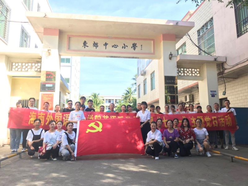 在中国共产党成立98周年之际,英语系党总支部于6月28日组织全体党员(含预备党员)前往东郊镇中心小学开展主题党日活动。海南外国语职业学院“乡村振兴”工作队驻东郊镇工作组张萍处长全程参与活动。
