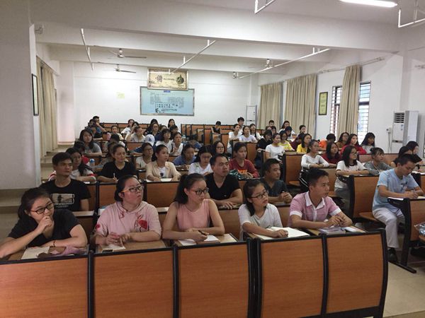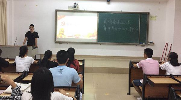 2017年11月17日下午,英语系党总支学习十九大会议精神专题党课在AE101教室如期举行,出席本次党课的有系部党总支林鹏书记、团总支冯琛书记、系部全体辅导员、系部学生党员、入党积极分子、培养对象、在校班级班长、团支部书记和学生会主要干部共计120余人。本次党课由我系第三党支部潘立鹏书记主讲,题为《聚焦党的十九大》。