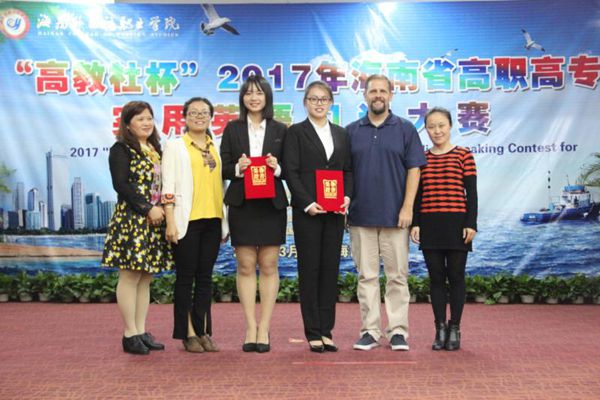 导游服务比赛获奖选手林小环(左6)与教师们合影