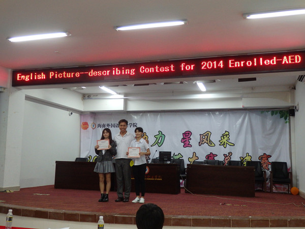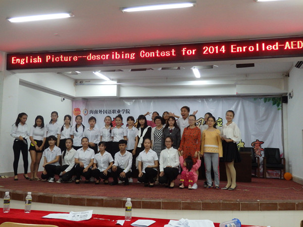 为了丰富学生的校园生活,提高学生的英语口头表达能力,11月6日晚上7:30应用英语系在多功能报告厅举行了16高职各班(五年一贯制,16少儿1-2班,16翻译1班,16涉外事务1班)的英语情景描述比赛,每班推荐选派约3-5名选手,共有18名选手参加了此次比赛。比赛有两个环节,第一个环节是看图并用英文描述图片并做评论,不得带讲稿,第二个环节是回答外教提出的与图片内容有关的问题和其他问题,选手用英文回答被问的问题,评委们根据选手表现评分。