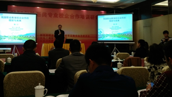 2016年4月22日-25日应用英语系刘然主任和曹阳副主任参加了在浙江省义乌市举办的2016年外语类专业校企合作培训研讨会。承办单位是义乌工商职业技术学院。此次会议与以往的会议不同,除了资深专家从理论层面上关于高职教育校企合作的报告以外,还有行业、企业协会领导关于行企业协会在校企合作过程中所起作用的讲座,更有精彩的是来自全国七所高职院校二级学院外语学院(系)领导校企合作的经验介绍极其合作企业老总与高职院校合作的理念和方法的分享。