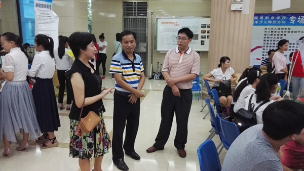 2016年6月6日下午三点,海南外国语职业学院应用英语系少儿师资方向专场招聘会在学院综合楼大厅举行。文昌市就业局陈礼铭副局长和海南外国语职业学院相关领导到场观摩。