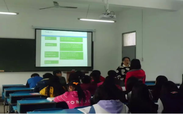 1.英语翻转课堂:武汉职业技术学院外语外贸学院的翻转课堂在全校进行了2012届8000学生中的大约6000名进行了翻转课堂实验,和未进行翻转课堂教学的班级比较,效果显著。学生的英语表达能力明显提高,对英语的兴趣明显提高。学校对翻转课堂教学进行技术支持,开发了教学应用软件辅助师生通过手机就可以相互交流,学生可以利用手机学习,教师可以利用手机指导和监控学生学习。教师加强集体备课,共享资源,对学生每单元的学习都制出《课前学习任务单》,对学生的课前输入学习进行指导,在课堂上则主要是学生输出展示、教师检测指导。学院也对实行翻转课堂教学的老师进行1.1课时量计算以鼓励教师进行教改。翻转课堂由公共教学部的谭妍老师在15级建筑班为大家上了一堂翻转课堂的展示课,课堂效果非常好。学生勇于表达自己,总体英语表达能力很强。