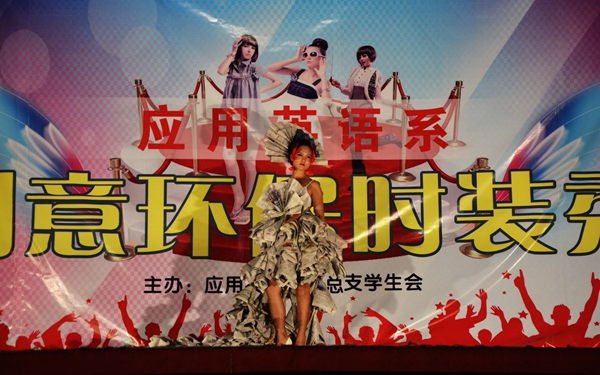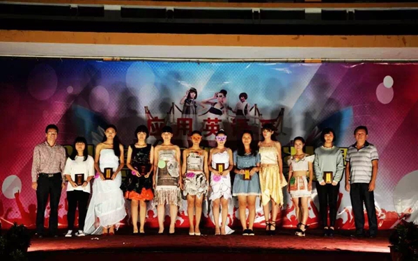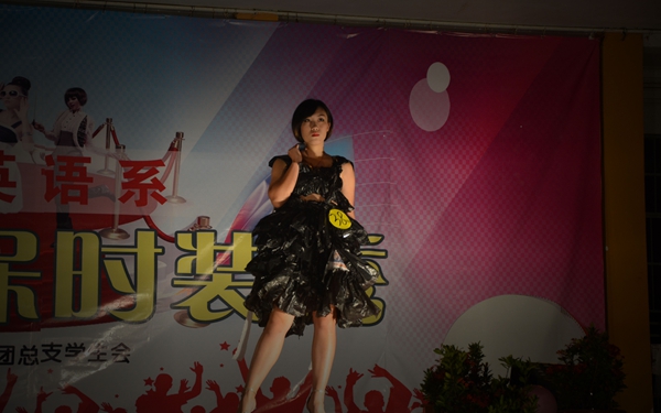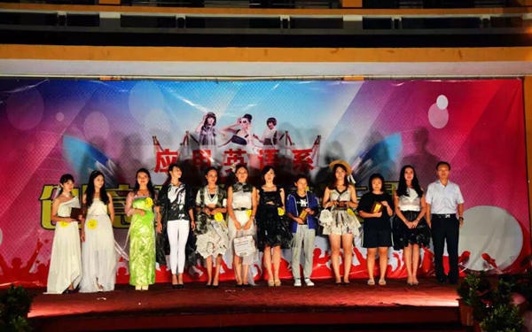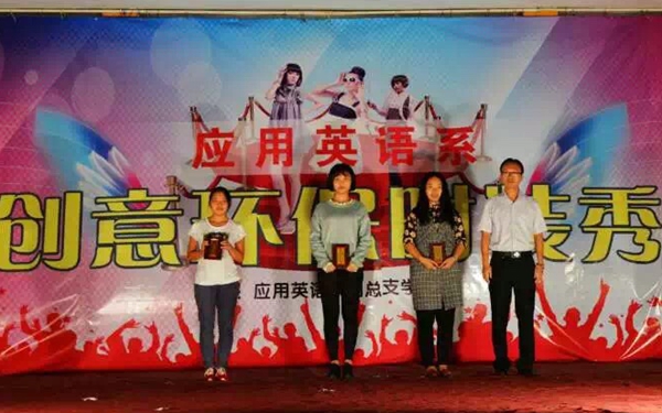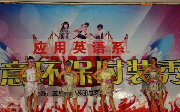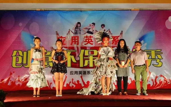 11月22日晚上8点,为呼吁低碳生活,倡导环保理念,海南外国语职业学院应用英语系团总支学生会组织在学院一号教学楼前舞台并举办了一场另类的时装秀 ----应用英语系首届创意环保时装秀决赛,由52名模特组成的13个小组分为环保创意组和创新组进行比赛。团委张桓桓书记、学生处符兴宝副处长、学生处张政副处长、应用英语系党总支林鹏书记、西语系党总支李南群书记、团委干事陈锦程老师受邀出席并观看了本次比赛。