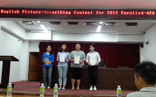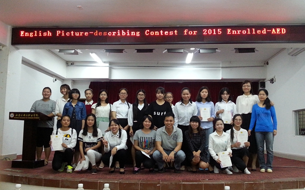 12月1日晚八点,多功能报告厅里掌声连连。我系基础英语教研室组织并举办了15级新生情景描述比赛,本次比赛特邀的评委老师分别是喻娟老师,苟春花老师,高峰老师,Ashley老师以及外籍教师Cooper。本次比赛共有22名参赛选手,比赛共分为两个部分,第一部分,选手们根据所抽取的图片进行情景描述,第二部分是外教提问环节。整场比赛共抽取了十六幅图片,图片内容涵盖了信息技术的发展、文化交流、社会道德、节能环保等多个方面。无论是比赛的内容方面,还是最后外教提问部分, 都要求选手们有自己独特的见解,开发思维,各抒己见。一段段文辞优美的叙述,无不引起观众的强烈的共鸣和评委老师的欣赏,每位选手旗鼓相当,整个比赛过程中掌声不断。