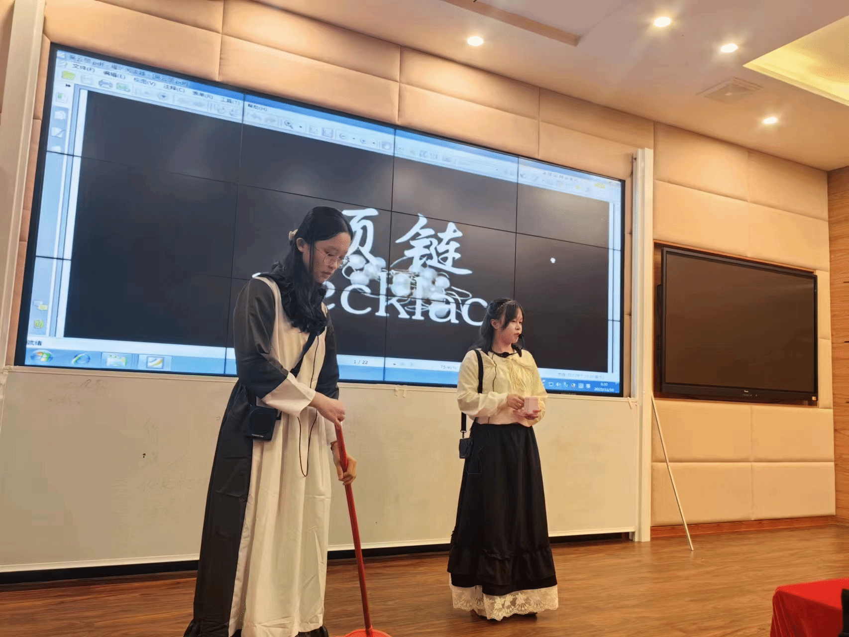 在比赛中各组都展现了自己的风采,尤其是第六组表演的剧目《甄嬛传》最令人印象深刻,不管是讲英语台词的流利度还是表演都非常精彩!有了道具的加持和人物之间的相互配合,该节目显得更加出色。陈家建老师为此次活动进行了点评,他说,今天大家表现非常棒,通过精彩的台词表现和表演以及精致的道具和场景设置,展现了话剧艺术的魅力,每组各具特色,人物设定形象突出,相信我们中某些同学将来一定能成为好演员!最终同学们也获得了令自己满意的成绩。