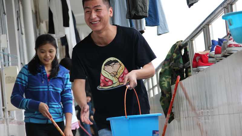应用英语系团总支组织志愿者对男生宿舍进行大扫除活动