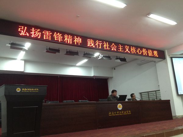报告会由我系党总支林鹏书记主持。会上,围绕“弘扬雷锋精神践行社会主义核心价值观”的主题,就“重温雷锋精神短暂的生命,光辉的精神”、“培育和践行社会主义核心价值观的基本内容、内涵和意义”、“雷锋精神与社会主义核心价值观的关系”、“向雷锋同志学习,自觉践行社会主义核心价值观”等四个方面展开阐述。在重温雷锋同志光辉的精神中,他用一曲《接过雷锋的枪》歌曲的视频生动展示了雷锋同志的人格魅力和感人事迹;同时,韩祝畴主任邀请我系党总支书记林鹏为大家朗诵了赞扬雷锋精神的诗歌。在讲解雷锋精神与社会主义核心价值观的关系时,他指出,“雷锋精神”是全心全意为人民服务的体现,而“社会主义核心价值观”则概括为“倡导富强、民主、文明、和谐,倡导自由、平等、公正、法治,倡导爱国、敬业、诚信、友善。”雷锋精神和社会主义核心价值观具有高度的统一性和实践性,雷锋精神是社会主义核心价值观的生动诠释。