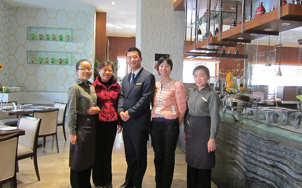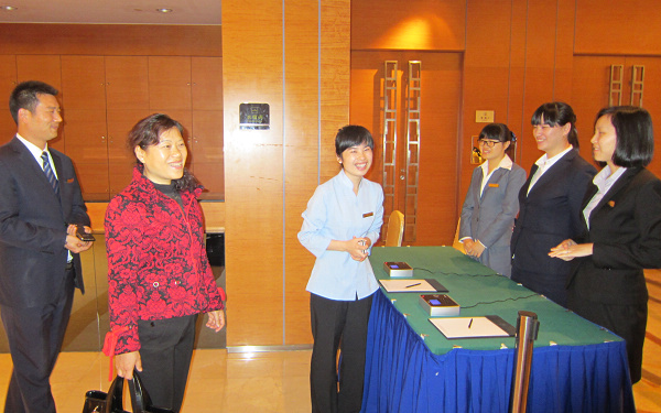 曹副主任和吴老师与在温州天豪君澜大酒店的27名2014届实习生进行了亲切交谈,亲临各岗位了解工作状况,并深入员工宿舍和食堂询问了毕业生的工作和生活情况。交谈中,曹老师鼓励大家平时多学习充实自己,扩大知识面,多与同事沟通,提高自己的业务水平。