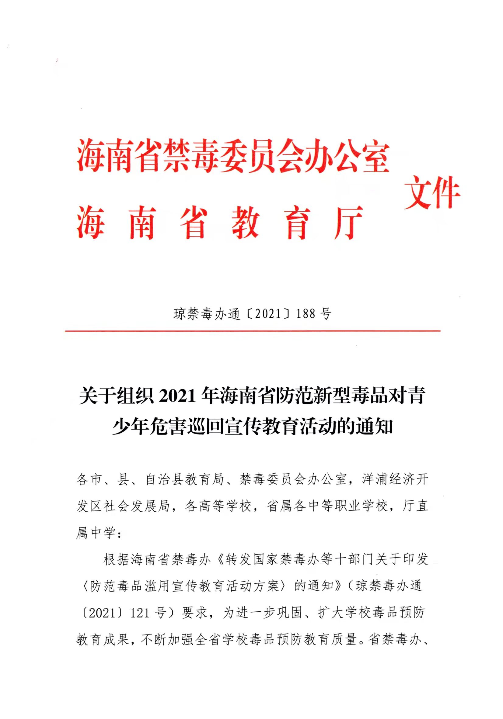 海南外国语职业学院关于组织2021年海南省防范新型毒品对青少年危害巡回宣传教育活动的通知