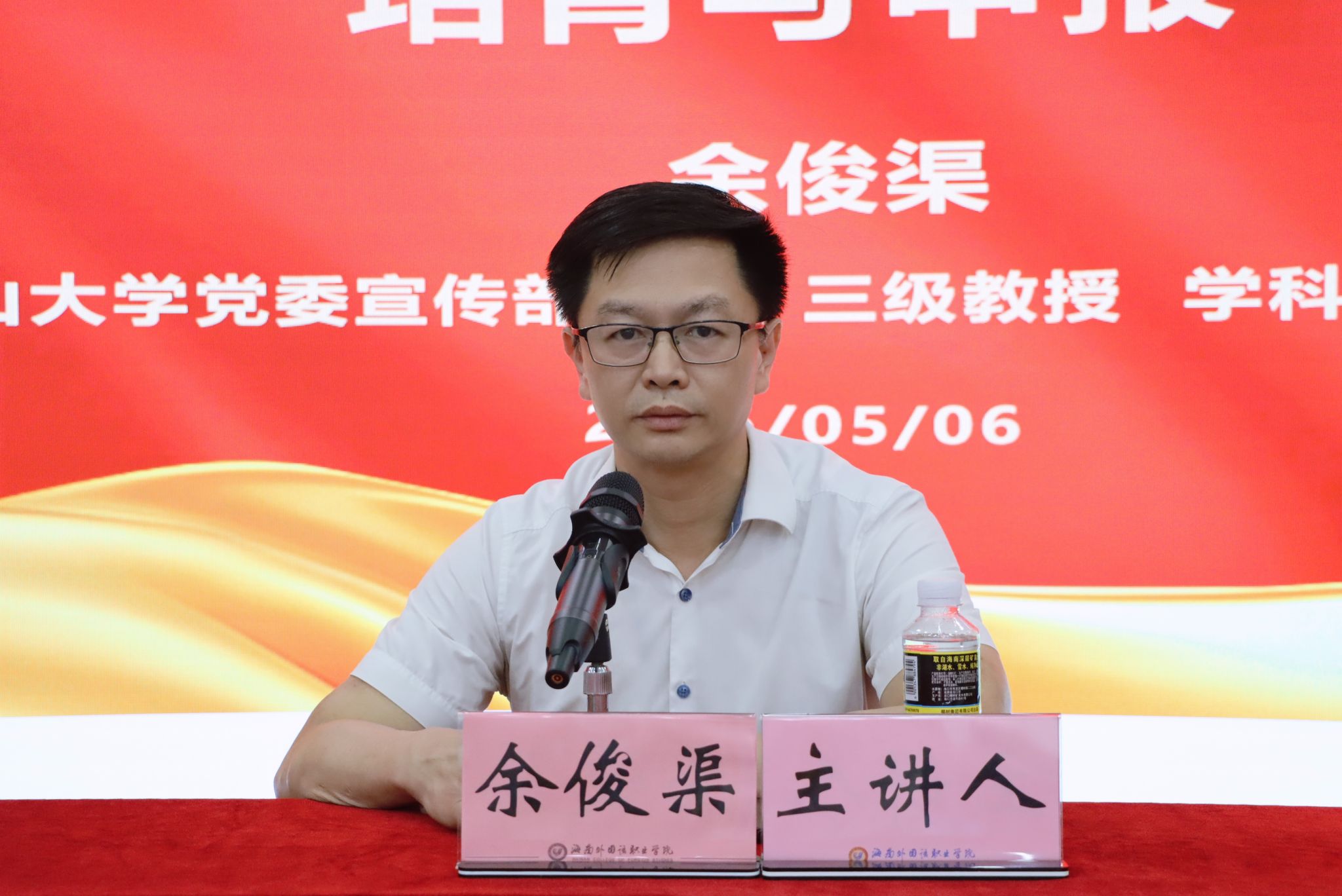 5 月 9 日,我校聚焦基层党建与思政工作提质增效,连续举办两场专题讲座,特别邀请广东高校网络思想政治工作中心常务副主任、佛山大学党委宣传部部长余俊渠教授到校主讲,为党务工作者和思政工作人员提供精准指导。学校党委副书记梁松参加讲座并讲话。